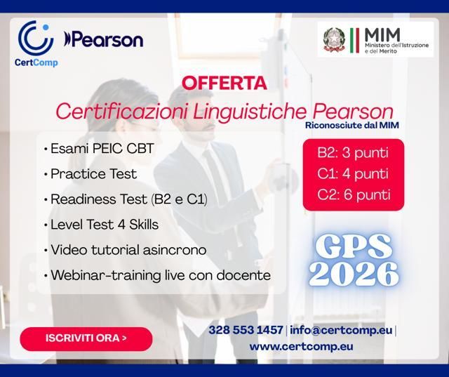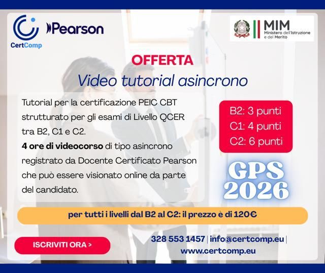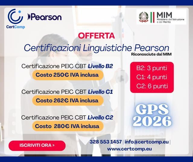 Certificazioni Linguistiche Pearson – Offerta GPS 2026 (PEIC CBT)